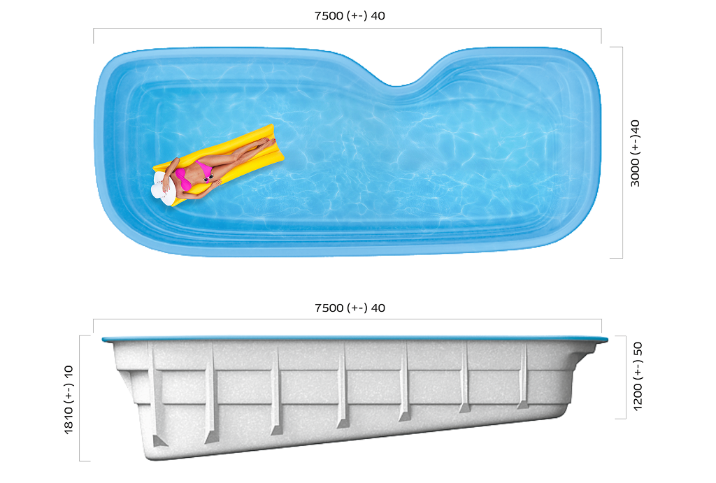 «Флери» – это бассейн, сочетающий в себе просторную плавательную зону, уютные зоны для отдыха и уникальные условия интеграции в ландшафт. Четкие геометрические формы с мягкими скруглениями создают элегантный современный силуэт. А специальная выемка вдоль борта – возможность для декоративных посадок (карликовый можжевельник, самшит, лаванда) или каскадного водопада.